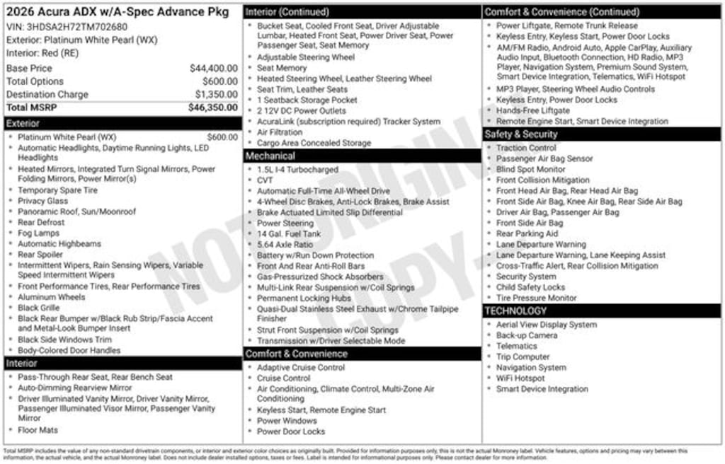 - Loyalty/Conquest Offer: $1,000 offer on select 2026 Acura ADXDetails