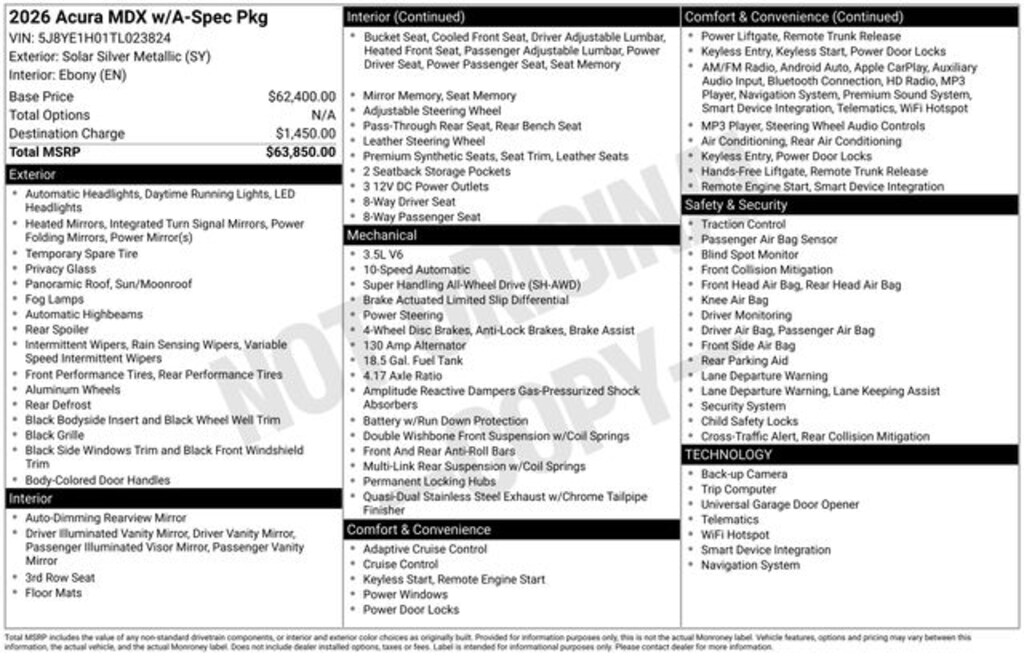 Come see us at Hiley Acura of Fort Worth where your time is Hiley respected, our reputation is Hiley regarded, and our prices are Hiley competitive. Price includes: $1000 - Loyalty/Conquest Offer. Exp. 04/30/2026